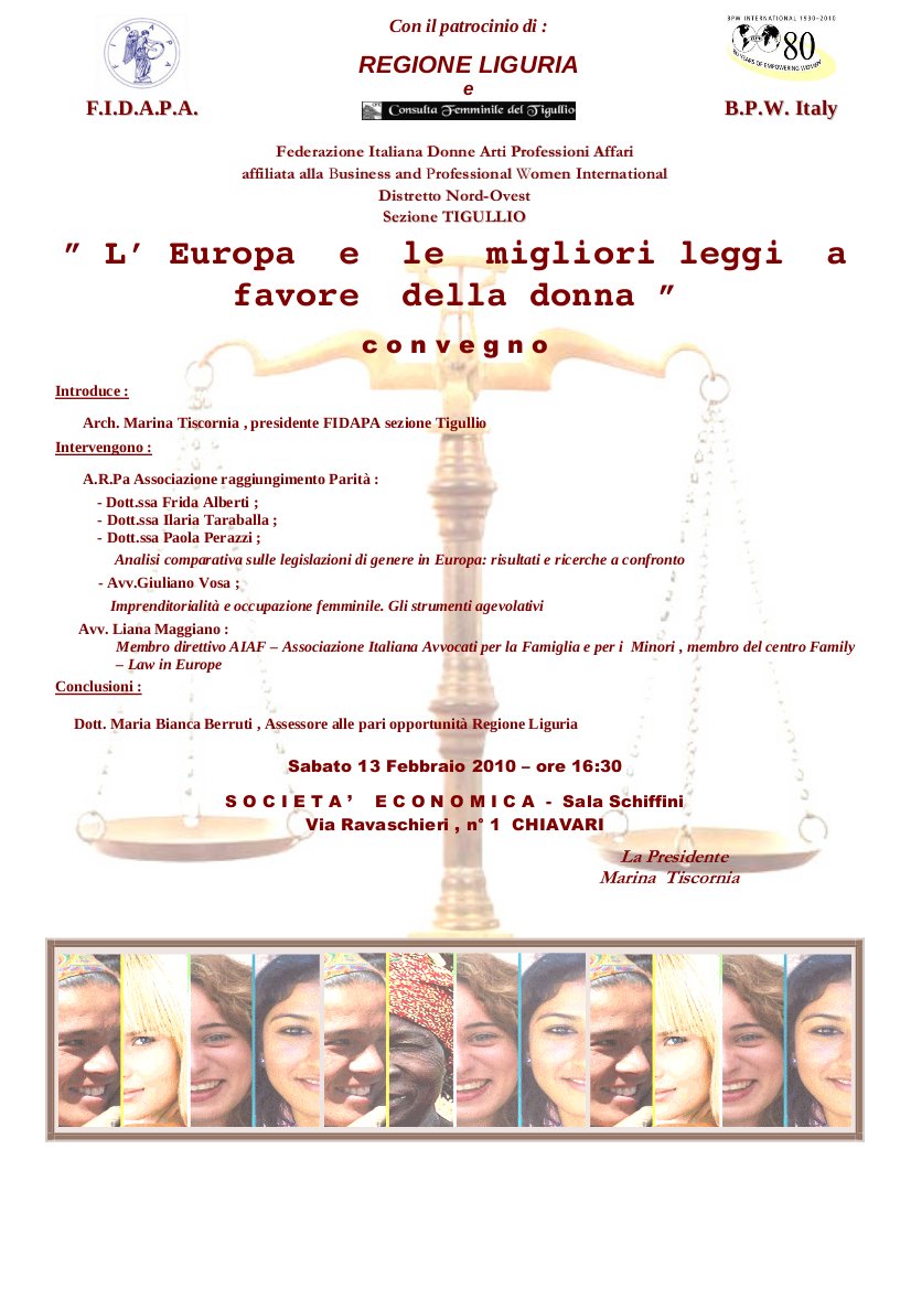 | Milano-Convegno "Le 14 leggi migliori per le donne in Europa" |